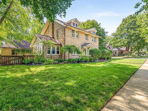 STATELY ALL BRICK COLONIAL IN EDGEWATER NEIGHBORHOOD. Lovely block of homes on brick-paved, tree-lined street! Charming living room with hardwood floors, side sunroom, wood-burning fireplace. Gorgeous brick paver "courtyard" patio with arbor in back of home (off kitchen) perfect for entertaining. Kitchen features Corian counters, stainless steel appliances, pantry. Generously-sized dining room and half bath complete the main floor. Large full bath on upper level with jetted tub and large shower. Stylish primary bedroom has two walk-in closets, newer light fixture/ fan. Two additional bedrooms on 2nd floor are nicely decorated and ready to move in! Attic has home office with exposed brick wall. City of Rockford recently installed new copper pipes and water line to the property. Water heater new in 2019. Roof new in 2019. 2 furnaces/ 2 A/C units.