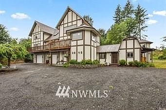 Imagine living in SECLUSION, SAFETY and TRANQUILITY in a beautiful one of a kind Tudor style home. Built with love, the home has 4,800 sq ft in main house and 1900 sq ft of garage space. Includes a second complete living quarters. Great room concept with soaring 27 ft high ceilings. Master Suite has a jetted tub. Loft over looking the front room. Perfect lighting and beautiful views through every window. Also a Wood-Fired sauna and landscaped backyard with a pond. All on 4.5 very hidden acres.