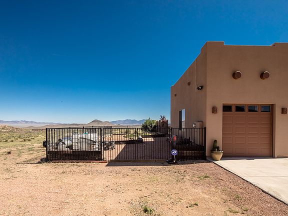 SANTA FE CUSTOM HOME 6+ ACRES OFF PAVED SHR & FERGUSON RANCH RD*PRIVATE AREA SO ENJOY YOUR SECLUSION*UPGRADED & WELL CARED FOR BY THE OWNERS*1/3 OF AN AC OF BACKYARD HAS CUSTOM BLOCK FENCE, DESERT LANDSCAPE, COVERED/UNCOVERED PATIOS, SPA, GARDEN AREA & ARGUABLE THE BEST VIEW OF AREA MTN RANGES*REMAINING ACREAGE IS A HORSE LOVERS PARADISE W/PLENTY OF ROOM FOR ARENA, BARN, CORRALS & MILES OF OPEN RIDING IN ALL DIRECTIONS*RAISED GARDEN W/IRRIGATION & FENCED*MASTER SUITE,2 BEDROOMS & LARGE OFFICE/4TH BEDROOM*MASTER SUITE OFFERS PRIVATE EXIT TO BACKYARD & SPA W/CITY & PANORAMIC MOUNTAIN RANGE VIEWS*MASTER BATH W/DUAL SINKS, WALK-IN CLOSET & DUAL HEAD WALK-IN SHOWER*10' CEILINGS & 8' PANELED DOORS THRU OUT HOME*UNIQUE OPEN CONCEPT HOME W/HUGE KITCHEN AREA OVERLOOKING BREAKFAST BAR INTO LIVING AREA W/ROCK WALL FIREPLACE*GRANITE COUNTERS & ISLAND & CUSTOM WOOD CABINETS SURROUND KITCHEN W/TONS OF STORAGE*STAMPED CONCRETE FLOORS THRU OUT ENTIRE LIVING AREA*LAUNDRY ROOM W/UTILITY SINK & 1/2 BATH LEADS TO 3 CAR GARAGE & 8' DOORS*RV HOOK UPS ON SIDE W/30 AMP POWER, WATER & SEPTIC ACCESS*HIGH PRODUCING WELL TESTED IN 13 AT 15 GPM*INTERNET & CELL SERVICE*PLEASE ASK FOR FULL LIST OF FEATURES