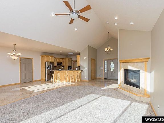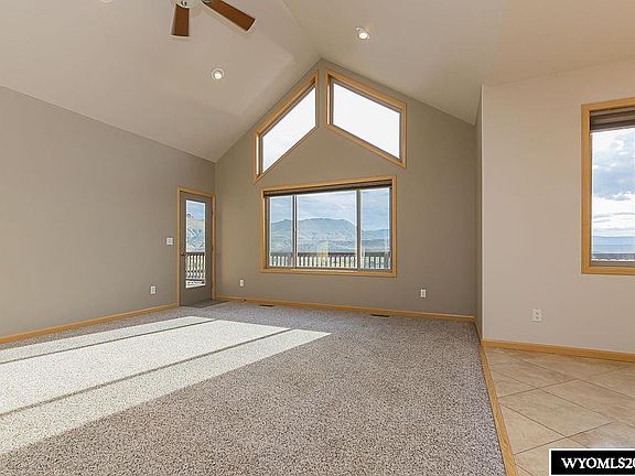 Stunning Custom-Built Ranch with Breathtaking Views: Don’t miss your chance to own this Palmer Construction ranch with the best views in town sweeping 180° river and mountain scenery showcased through vaulted ceilings and expansive windows. The open-concept kitchen features wood cabinetry, granite countertops, travertine flooring, stainless steel appliances including a built-in oven, gas range, and French door refrigerator, plus a triple basin sink. A double-tiered countertop with built-in breakfast bar adds both function and style. The primary suite captures incredible views from both the bedroom and ensuite, which includes a jetted tub, stand-up shower, and walk-in closet. Two additional bedrooms share a spacious main-level bathroom. The fully finished walkout basement offers 9-ft ceilings, wood flooring, a custom wood entertainment center, two large bedrooms, a full bath, and a versatile laundry room with cabinetry and workstation—ideal for bulk pantry storage or crafts. Quality craftsmanship is evident throughout: solid wood moldings, dual laundry hook-ups, a concrete safe room, and a heated 1,224 sq. ft. garage with finished walls, insulated doors, and epoxy floors. Additional highlights include a dedicated RV parking area and cozy gas fireplaces on both levels. From sunrise to sunset, enjoy the panoramic views from your expansive 50-ft Trex deck or through the home’s light-filled living spaces. Overlooking Wilkins Peak and the Kissing Rocks, and within walking distance of FMC Park’s outdoor archery range and the Green River, this property combines exceptional design, comfort, and location. For more information call Listing Broker; Jannel Fossen with AAA Properties, LLC at (307) 389-0903.
