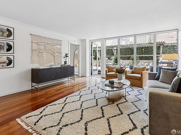 Experience luxury indoor-outdoor living in this renovated one-bedroom, 1.5-bath condo featuring an open floor plan, floor-to-ceiling windows, and an extraordinary private terrace spanning over 630 square feet. The primary suite includes a large walk-in closet with custom built-in shelves and drawers by California Closets and an en-suite bathroom with a soaking tub and double vanity. The updated kitchen is equipped with Carrara marble countertops, a Viking range, a Bosch dishwasher, a wine fridge, and a large center islandperfect for casual dining or hosting guests. Additional highlights include a full-sized in-unit washer and dryer. The expansive private terrace features a raised dining area with water views, heaters, and charming caf lights ideal for both daytime relaxation and evening gatherings. This professional managed building features a weekday onsite building manager, doorman, and security services, secure private storage, and large, easily accessible parking. Amenities include a rooftop deck with sweeping panoramic views of the Bay, with a sightline that extends from the Golden Gate Bridge, via Alcatraz, to SF's Downtown. All this, and more, is situated just blocks the boutiques and restaurants of Polk, Union, Chestnut, and Fillmore St.