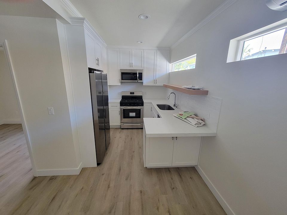 Brand New Construction! All new appliances. Fridge, Stove, Dishwasher, AC Private Quiet rear unit off the alley Large Closet Owner pays water, trash and landscaping.