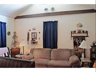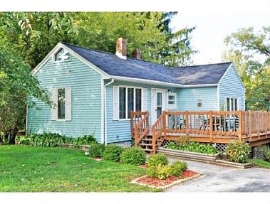 Cozy 2 bedroom 1 bath home on private lot. Kitchen complete with gas stove and refrigerator, living room with vaulted ceilings, full bath. Large deck and park like yard. Oversized two stall garage. City sewer and water. Well for outside watering.