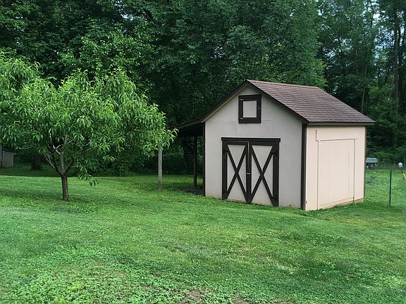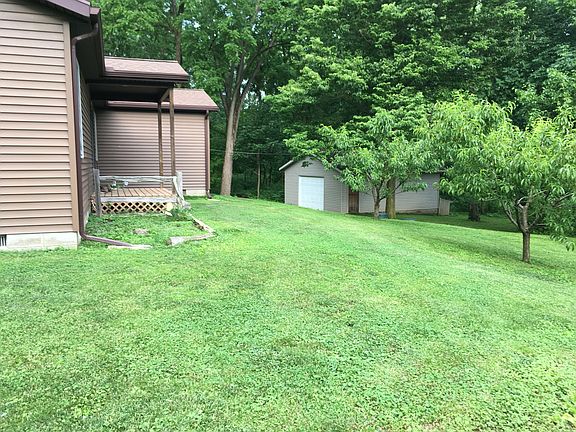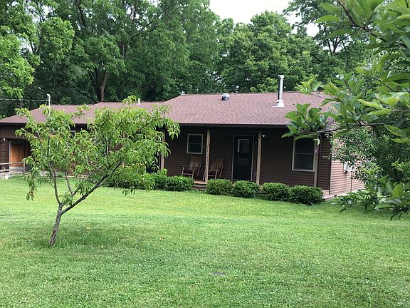 Tucked away from the bordering trees at the road is this, new in 2011-4 Bedroom, 2 Bath, 1,984 sq. ft. with 200' of frontage on 3.41 acres--mostly woods with open views at the roadway-apple, pear & peach trees dot the yard area * The mature walnut trees have been solicited by lumber buyers * Oak hardwood flooring throughout except for carpeting in the bedrooms & vinyl in the bathrooms * Bright knotty pine walls give it that mountain resort retreat feel--cedar lined closets throughout * Several outbuildings including a 24'x20' with concrete floor, electric, windows & overhead door; a 14x10 with concrete floor, a 12x10 with overhang & more * 33' front & 12' back covered porches w/vinyl decking * Some other features include can lights, tunnel lights, hickory cabinets, wood stove & breakfast bars * A secondary kitchen and living room could be converted to a 28'x14' family/rec rm.* Ideal for multigenerational households, live in caregivers, boomerang kids or friends purchasing together--seller says make offer