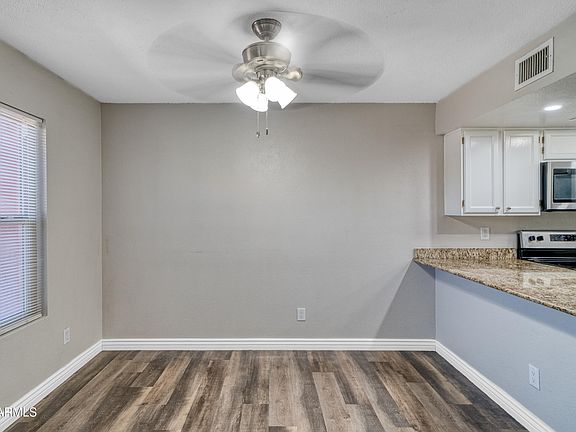 Dobson Glen tri-level community townhouse. This property offers 2bd and 1.5 ba with a spacious loft that can be used as a third bedroom or office. Interior boast clean lines in favor of modern colors. Laminate flooring lower level and second level. Spacious living/dinning room. Beautiful granite counter tops with brand new stainless steel appliances and white shaker cabinets. Grey carpet on third floor that over looks second level. Main suite has an amazing Natural light and walking in closet, bathroom has its own private room. Spacious patio to relax and drink your coffee as you relax.