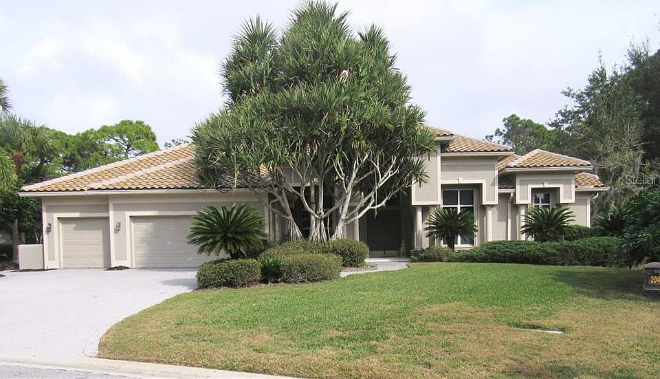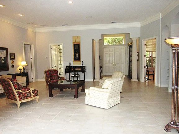 Custom Rutenberg home with new roof, pool and spa. Very private backyard. This home has 8' doors, high ceilings throughout, crown molding, and a gourmet kitchen. Double oven, warming drawer, Dacor built in oven in large island, Subzero refrigerator, vegetable sink and a full sink. Beautiful Calacutta marble counters throughout home, and an abundance of custom cabinets. Formal open living room with an adjoining large dining room. Living room opens seamlessly to the newly updated lanai and rebuilt salt pool and spa. Spacious family room has a two sided gas fireplace, and a second wet bar with ice maker/frig for entertaining. The master suite features a separate custom closet room, as well as his and hers full baths. There are 3 large additional bedrooms, which could also be an inlaw suite, as well as a separate media/office with bathroom. This home has recirculating water, has been repiped, and storm shutters. The 5 zone air conditioner is 5 years old, with new controls. Calusa Lakes golf membership is optional, tennis available for all residents. Association fees are $238 quarterly, and provides a entrance guard in the evenings, water for outdoor irrigation, maintenance of private roads and common areas. Minutes to beaches, shopping, churches, Sarasota Memorial Hospital, restaurants, and The Legacy Trail.