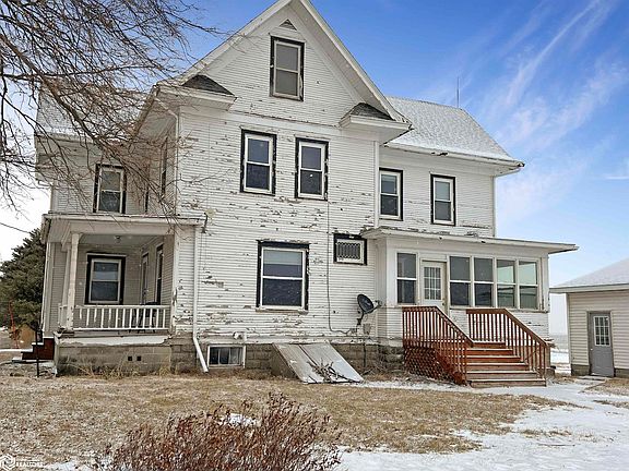 This acreage is conveniently located close to I35. A lot of memories can be made in this large farm house. There is also a 54' x 67' Machine shed with partial concrete floor, and a 48' x 60' barn with plenty of storage. Inside the home you will find 3-4 bedrooms with 1.5 baths. There are 2 living rooms and a large eat in kitchen with the laundry area on the main floor. There is also a walkup attic and full basement with newer furnace, central air unit, and water heater. Garage is detached with 2 stalls. The price reflects the home needing updated, and the exterior needs repainted or new siding. You can update at your pace or to your taste! Call us to set up your showing!