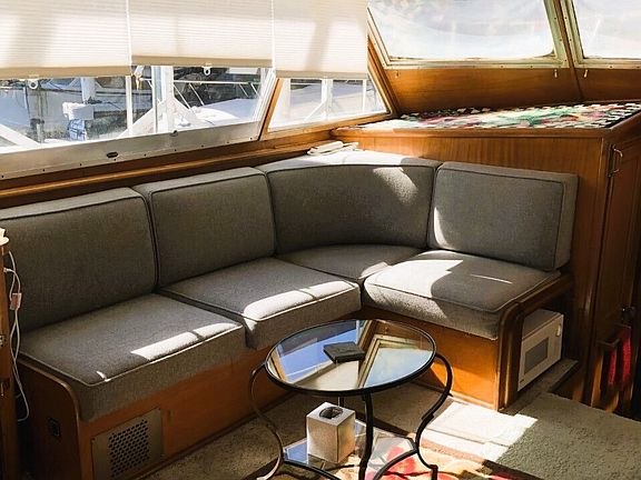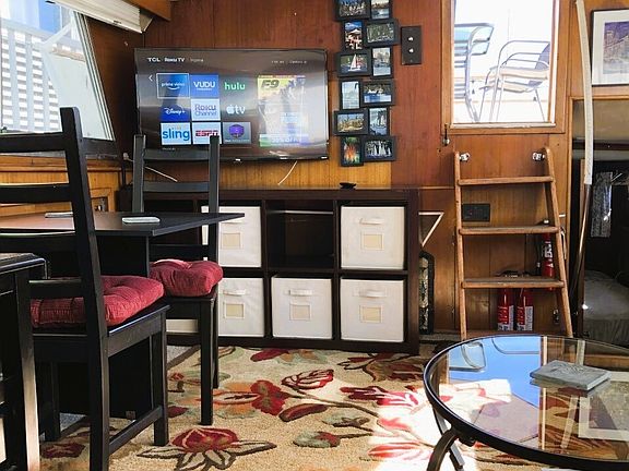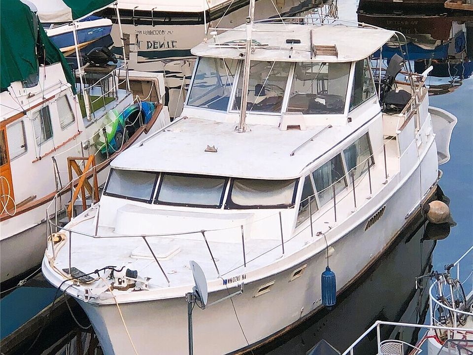 Make this 41' Hattaras your home or your income-producing property! Marina allows Airbnb of 30 days or longer and it's easy to keep this one occupied in its central Lake Union location. Fully furnished, includes all appliances, kitchenware, bedding, TV, etc. to make it a turn-key Airbnb or ready for your easy move in. Large bright living area, Queen bed plus seating in the aft cabin w/ 3/4 bath, plus twin bed & built-in desk in the forepeak. City-registered FOWR plaque of 41 x 14 gives you possible replacement options in the future to build a houseboat with the same footprint. Liveaboard slip is located conveniently on the Burke Gilman trail in the center of Westlake that provides great views of Gasworks Park, Lake Union & Downtown.