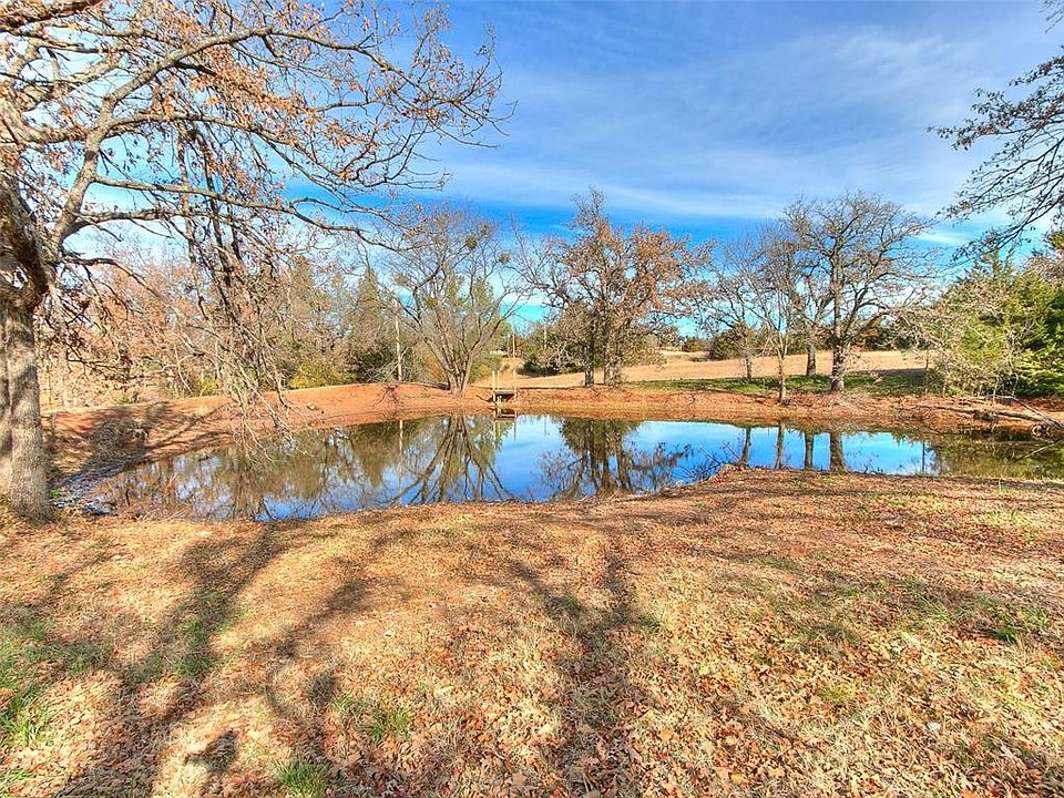 Build your dream home here! A manufactured or mobile may be allowed with a building permit, site plan, and Alta survey. Clear water pond with small dock and bass and crappie. 2 story metal barn with loft storage and concrete floor. Barn used to have electric, but the line was broken in a storm. Middle part of the barn is 36 x16 and there is a lean to on each side that measures 36 x12 each, all this equals about 1440 s.f. under roof. Beautiful mature trees in a park-like setting. Zoned Agricultural. Quick and easy access to HW9, I 40, Shawnee, TAFB, Norman. Frontage is approx 329.5 E & W. 660 N & S. ~~~~~ 2214 sf home and 5.01 acres adjoins to the west (mls#1090518 )~~~~~~~
