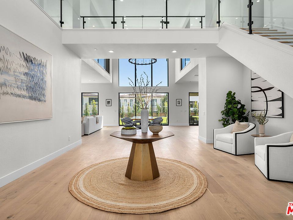 Welcome to the Ultra-Luxurious Harbor model of the Westcliffe Skyline Collection in Porter Ranch. A TRUE MUST-SEE! This brand-new home is situated on a corner lot. It boasts a dramatic entrance with a brand-new glass staircase, brand-new engineer hardwood floors, freshly painted walls, soaring ceilings, abundant natural light, and an open-concept floor plan perfect for California indoor-outdoor living. The gourmet kitchen features a large center island with a breakfast bar, ample counter and cabinet space, and a spacious walk-in pantry with stainless steel appliances, including a Sub-Zero refrigerator and Wolf range. The stunning primary bedroom suite offers breathtaking views and is complemented by a massive walk-in closet. The luxurious primary bath includes dual vanities, a large soaking tub, a deluxe shower with a seating area, and a private water closet. The home also features a spacious loft area with hilltop views, secondary bedrooms with roomy closets and private baths, a desirable first-floor junior suite with a private bath, a convenient powder room, and a centrally located laundry facility with ample storage. Enjoy a covered outdoor patio, with a recently installed grass turf, 24-hour security, and a guard-gated entrance in the hills of Porter Ranch. This fantastic location provides easy access to renowned schools like Sierra Canyon and the highly rated K-9 PRCS, the newly constructed Vineyards shopping center, AMC theaters, Whole Foods, multiple upscale restaurants, and convenient proximity to the 118 freeway. Don't miss this incredible opportunity to experience luxury living at its finest.