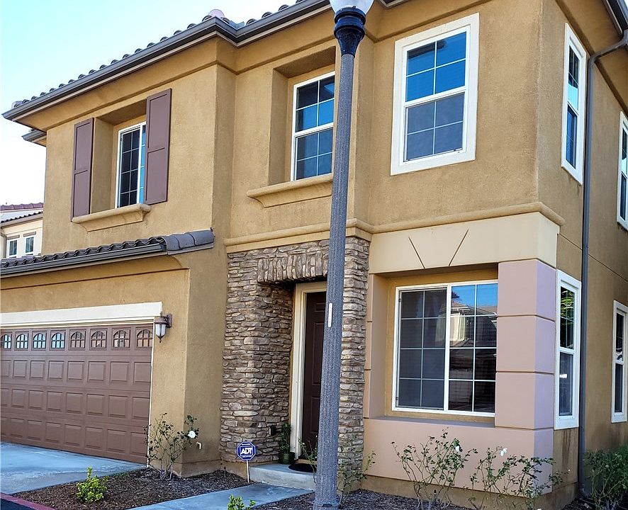 Welcome to this gorgeous 2-story home located in gated community. As you walk thru the front door you are invited to spacious living room with modern wall cozy fireplace with mantle. Lovely kitchen opens up to dining area with additional breakfast bar, granite counter tops, wood cabinetry, tile flooring and double sink. Sliding glass door leads to low maintained private back yard perfect for entertaining. Primary bedroom offers, lots of space, walk in closet window treatments, and private full bath with dual sinks and separate shower and tub. Two guest rooms bedrooms offers sliding mirrored wall closet, raised panel doors and ample natural light. Perfect Sized Upstairs Indoor Laundry Room. Well tended gated community is centrally located to freeways and community pool & spa, park, BBQ area. No common walls and solar paid off. 2-car attached garage side-by side parking. Low HOA Fees Plus No Mello-Roos! Add This Home To Your List Of Must Sees!