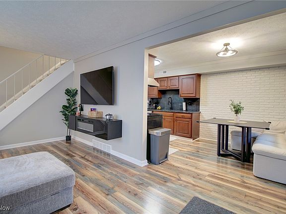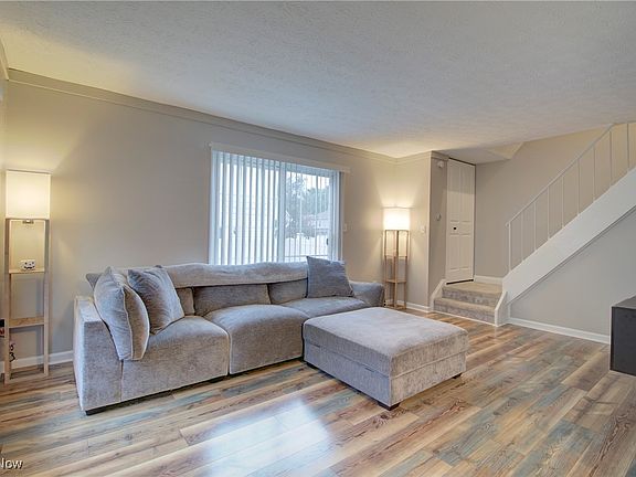 This beautiful townhouse-style condo in Middleburg Heights has been updated over the last year with nearly everything! The eat-in kitchen has a new ceramic tile backsplash, granite countertops and a large, single basin sink, a white washed brick feature wall and there are stainless steel appliances (brand new dishwasher). The main level also has a new front door, lighting and a newly refinished half bath. The owners also added a nice electric fireplace in the large living room and the wiring is hidden in the wall for the mounted TV, to boot! Sliders go out to the recently laid concrete patio complete with vinyl fencing. Upstairs are two bedrooms, both with new recessed/overhead lighting and the full bath was remodeled in the last couple years with a ceramic tile surround, vanity, lighting and flooring. The master suite is extremely large and has a closet with built in shelving and lighting. The carpet throughout was installed in 2024 and the current owners painted nearly the entire home. There are pull down steps to the attic where there is plenty of room for storage, as well as more storage on the lower level in the utility area. Also, the finished basement has a great recreation room that is multifunctional where new LVT flooring was laid. This home is unique to this community as not many have basements and is truly in great condition. It's one of the few that have additional parking for the residents/guests, as well! Plus, the location can't be beat with being close to the airport, I480, I71, shopping, and the Metroparks. This one is a must see if you've been waiting for a Williamsburg condo to come on the market!