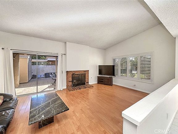 The inviting living room includes a cozy fireplace, and the home features a combination of laminate and tile flooring throughout.