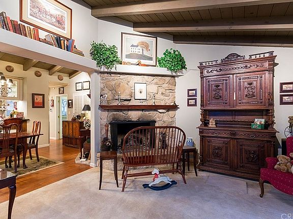 This home features a beautiful circular driveway with perfect setback all on a 17,499 square ft.. Kitchen features include Granite counter top, 6 burner Viking Stove with indoor Barbecue, side by side double oven, stand up Pantry with roll out shelves, roll out Spice rack, Lazy Susan, easy glide drawers, stainless steel sink, refrigerator and dishwasher paneled to match custom cabinetry. The living room is accented with a stunning gas fireplace, custom Mantle, wood beamed vaulted ceiling , French doors with beveled glass, all looking out to a park like setting. The dining area features Plantation Shutters, it's own gas fireplace and mantle, located conveniently close to kitchen perfect for entertaining. Bathrooms are equally improved features include beautiful travertine tile, kohler fixtures, custom vanity with Granite counters and more. The property includes a spacious home office located on the front of the property with its own separate entrance. The office comes with a professional 8 line phone system, built ins, access to backyard, and more. Don't miss the over sized upstairs bonus room with bathroom. This multi-purpose room has no limit it can be used as a family or Great room, Man Cave, income producing Studio perhaps or more. Features includ