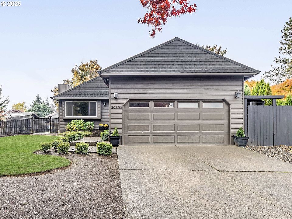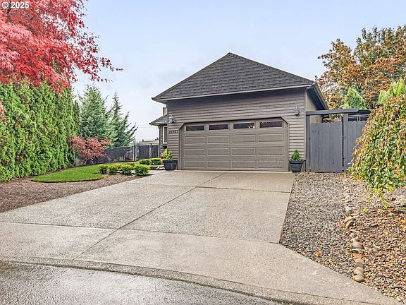 Tucked at the end of the neighborhood, this beautifully maintained single-level home blends modern upgrades with a peaceful, thoughtfully landscaped setting. The 3-bedroom, 2-bath floor plan offers engineered hickory hardwoods in the main living areas, plush carpet in the bedrooms, and a bright kitchen with stone countertops. Both bathrooms feature tile surrounds and stone counters for a polished, updated look. Recent improvements include ductless mini-splits added in 2019, a stunning 40’x14’ stamped concrete patio installed in 2023, and fresh exterior paint, gutters, and overhead lighting (living room + bedrooms) completed in 2024. Outside, the professionally landscaped .20-acre lot is designed for both beauty and functionality—complete with an 8’x12’ storage shed and raised gardening/play areas. Located just moments from city shopping and only 10 minutes from I-205, this move-in-ready retreat offers comfort, style, and convenience all in one.