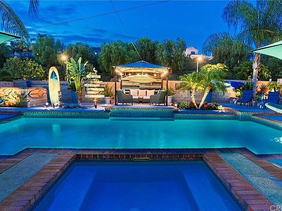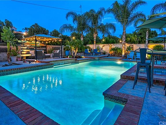 Welcome to this gorgeous turnkey home with great curb appeal. As you walk thru the front door you are invited into a bright and airy unbelievable, tastefully remodeled home. Enjoy high ceilings with plenty of sunlight for a light and bright feel. Unbelievable remodeled kitchen with all new stainless-steel kitchen appliances (under warranty) , Family room cabinets newly refinished. The open kitchen is an inviting design with custom Kitchen cabinets with Oak and cherry finish and glaze , stainless steel appliances and Granite counter tops, travertine back splashes with pewter inlay Windows look out onto huge pool & spa that makes you feel as if you're at the beach. This home features a formal living room and formal dining room. Downstairs powder room and laundry room that leads to the 2 car side by side garage with tons of built in cabinets and laundry area. All bedrooms upstairs, Newer roof, new attic vents, new facia and drip guards. New 200 amp electrical service with garage sub-panel. New exterior paint (Including stucco) and new interior paint, including all downstairs moldings and window trim. All windows "low E" double glaze including slider. All windows have custom finished casings. Wood Shutters on upstairs windows. Custom stone fireplace with travertine hearth. All new carpeting. Stair tread lighting, All LED permanent fixtures (except garage) All new custom barbecue / bar-poolside. Granite counter tops,six steel bar stools included."Bull" stainless 32" built in BBQ.
