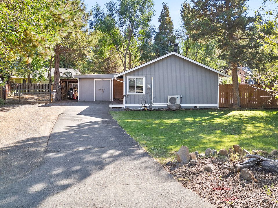 Truly a central Bend location, this unique, well-cared-for property offers privacy, convenience, and charm. Tucked away on a quiet cul-de-sac with .28 acres, it's move-in ready with new carpet and flooring plus efficient heating/cooling via woodstove and mini-split. The fully fenced, park like backyard has great amenities: paver patio, deck, firepit, hot tub pad, woodshed, gated access, RV/boat/trailer parking, and a versatile workshop. You'll have what you need to enjoy your home with family & friends. Enjoy easy in/out access by car or bike to The Old Mill, Deschutes River/Whitewater Park, Mt. Bachelor, and all the lifestyle options you enjoy. A great primary home with flexible options, including an active STR permit (non-transferable; buyer due diligence). Enjoy Bend the way it is meant to be! Skip the cookie cutter homes and beat up fixers & get to livin'!
