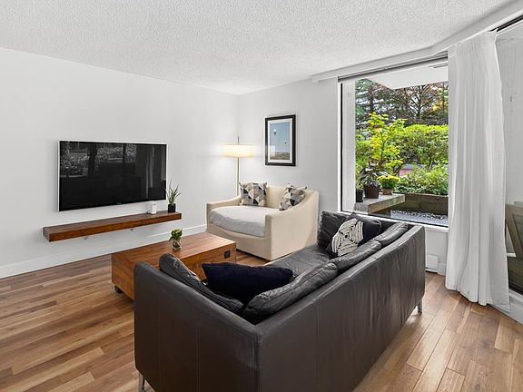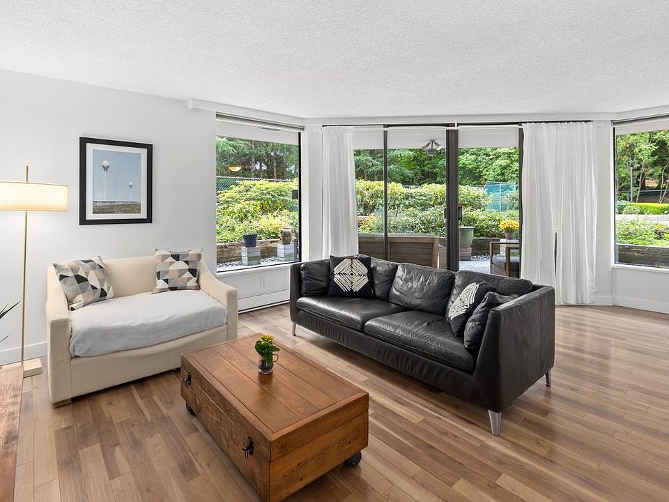 Tranquil living, embraced by nature! This pristine corner, garden suite occupies the premiere location in the building, surrounded by lush greenery in a vibrant setting. The 800+ sf wrap-around balcony feels like your own private park, perfect for morning coffee, summer BBQs or a bit of planting in the sunshine. Floor-to-ceiling windows bring the outside in, creating a seamless connection to the surroundings. Inside, the spacious layout offers flexibility for a home office or an expanded dining area, while both bedrooms are generously sized for comfort & relaxation. Anola (by Bosa), a well cared for concrete building, sits in a quiet community just steps from Brentwood Mall, SkyTrain, parks and more. Calm, comfort, and convenience come together in one exceptional retreat.