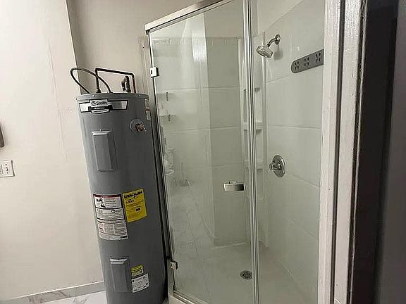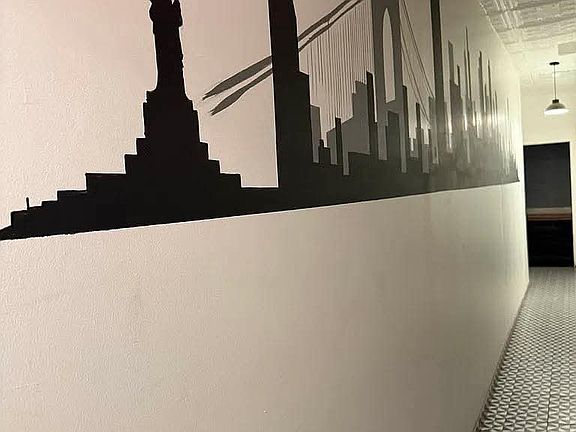 - Hardwood floors throughout the unit, giving it a warm and polished look. - Ornate tin ceilings with recessed lighting and ceiling fans a standout architectural detail. - Exposed brick walls near the windows and behind curtains, adding rustic charm. - Two large windows in the main living area that let in plenty of natural light. - Wall-mounted air conditioning units in multiple rooms for climate control. - Compact kitchen with stainless steel appliances (fridge and stove), white cabinetry, and a tiled backsplash. - Bathrooms with a glass-enclosed shower, water heater, wall-mounted sink, and clean tile flooring Up to 3 pets allowed but you are responsible for their mess. You are to pay an application fee of $80. Besides that, that's all.