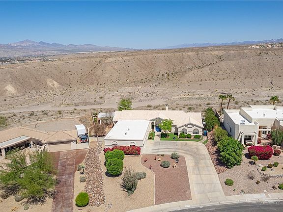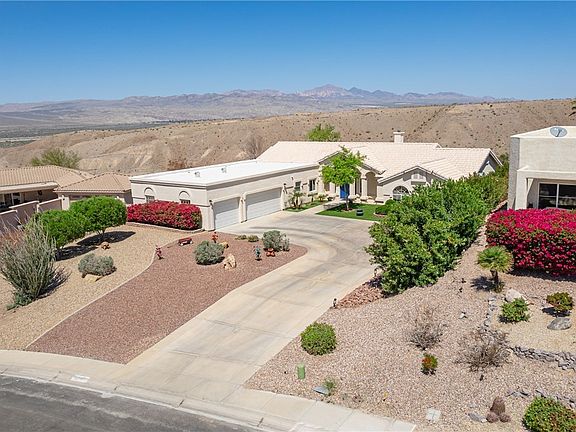 Experience the best of Bullhead City living in Arroyo Vista Estates, where modern comfort meets breathtaking mountain views! This stunning four-bedroom, 2.5-bath home, plus a recreation room, offers 2,767 sq. ft. of thoughtfully designed living space on a .8-acre lot that backs up to a picturesque arroyo. Enjoy beautifully landscaped grounds featuring a covered patio, pergola, horseshoe pit, putting green, and fire pit area perfect for entertaining or relaxing outdoors. Inside, the great room impresses with a stacked-stone fireplace, coffered ceiling, and custom shutters, creating an ideal gathering space. The oversized recreation room adds versatility, featuring vaulted ceilings, luxury vinyl plank flooring, and a full closet. The chef-inspired kitchen showcases designer cabinetry, quartz countertops, stainless steel appliances (including a refrigerator), a butcher block island, and a walk-in pantry. The primary suite feels like a spa retreat, featuring dual vanities, cascading faucets, and a rain glass walk-in shower. Enjoy the convenience of two laundry areas one located in the primary closet and another near the garage entry. The finished 3-car garage, measuring 25 ft. deep, offers ample space for vehicles and storage. The sellers have just installed a new Puragain whole-house water filtration system. Residents of Arroyo Vista Estates enjoy a vibrant community with access to a park, basketball court, baseball field, sand volleyball courts, playground, picnic area, swimming pool, and spa all just steps away. Don t miss your chance to own this exceptional home, where lifestyle, location, and luxury come together. All reasonable offers will be considered!
