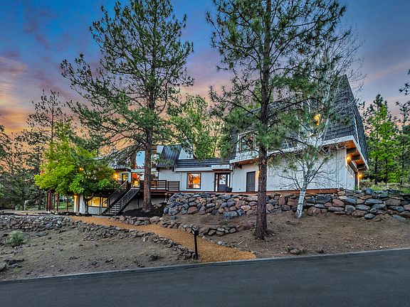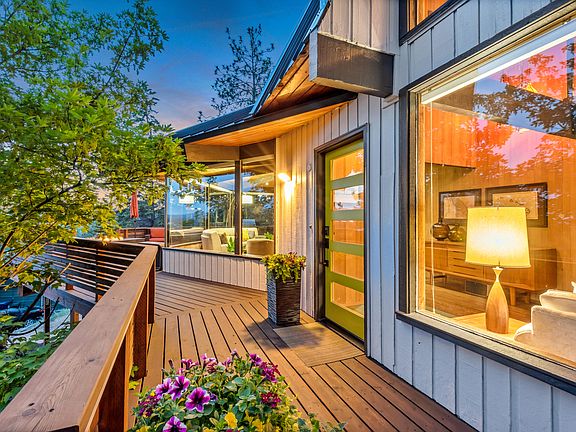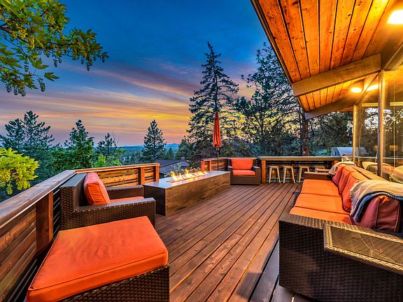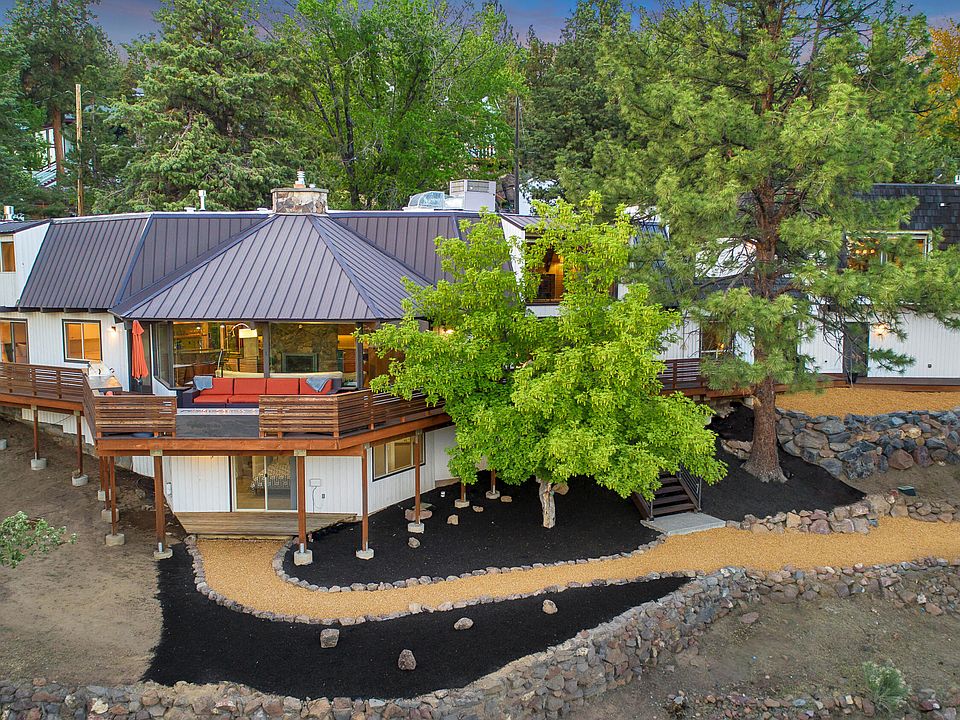 Situated in the West Hills of NW Bend on a 1/3 acre corner lot offering privacy while maximizing panoramic views that stretch from Mt. Bachelor, Paulina Peak, Old Mill smokestacks & of town. The main home is 3003sf plus a fantastic 1033sf guest quarters. Completely renovated & purposely designed to maintain the home's character, including rock fireplaces, original clear cedar strip paneling, & tongue and groove pine ceilings w/exposed beams. The primary suite is on the top floor with views of Mt Bachelor from bed. The main floor offers floor-to-ceiling windows, a stunning kitchen, bar, custom wine room, dining room, laundry, a bedroom, & two living areas with fireplaces. The loft is ideally suited for spectacular views, working from home, or an extra getaway space. The lowest level offers a private suite, w/interior & exterior access. Outdoor living spaces include a South-facing front deck w/built-in BBQ & custom gas fireplace, a rooftop patio, a back patio & yard, & lower deck & yard.