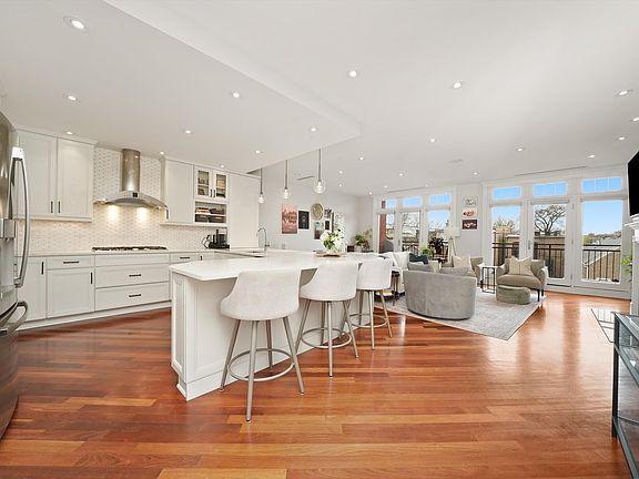 Welcome to 2041 W Division St, a stunning 3-bedroom, 2.5-bathroom newly renovated duplex penthouse condo nestled in vibrant Wicker Park. Just moments away from top-tier restaurants, bars, and coffee shops, this well-maintained boutique elevator building and only nine units, is truly a rare find. This meticulously maintained condo boasts an array of luxurious features and modern amenities designed for comfortable urban living, all while offering a serene and quiet environment. Step inside to discover a beautifully renovated kitchen with a designer backsplash, quartz countertops, stainless steel appliances including a gas stove with a range hood, wall oven, and a beverage fridge. The breakfast bar adds both style and functionality, making it a culinary enthusiast's dream. The open floor plan is accentuated by floor-to-ceiling windows that face south and bath the space in natural light, while window treatments provide privacy when desired. The home also includes 2 additional private storage closets and a laundry room with a new washer and dryer. The living area features a cozy fireplace, perfect for unwinding after a long day. Hardwood floors and upgraded recessed lighting throughout the home create an inviting ambiance throughout. There's a dedicated area for a dining table, perfect for entertaining, along with a sleek half bath on this level for added ease. Retreat upstairs to the primary ensuite, complete with a double sink bathroom, walk in shower, spacious walk in custom closet, and ample storage spaces. In addition, the upper level features two spacious bedrooms, each equipped with custom closets, providing additional storage and comfort and a gorgeous renovated second full bath. This unit is an entertainer's dream, boasting 4 outdoor spaces: two 5x20 balconies on the main level and the second bedroom level, a massive 20x30 private outdoor terrace fully renovated by Reveal Design featuring a pergola, outdoor floor tiles, turf space, and a built-in fire pit, and finally, a shared rooftop in the building with breathtaking skyline views. Additional perks for this building include an elevator, intercom security, and garage parking with an assigned space. Located in a quiet setting, this condo offers a peaceful retreat amidst the bustling city. With its prime location and exceptional features, this condo offers an unparalleled urban lifestyle experience. Don't miss the opportunity to make it your own!