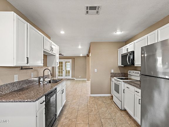 NO HOA!! - Come See This Nearly 2,000 SQ FT Single Level Home In South Phoenix Featuring 4 Bed 2 Bath + Carport! Open Floor Plan: Galley Kitchen with White Cabinets, Large Living Area, Recessed Lighting, Tile Flooring and New Interior Paint Throughout Including Kitchen & Bathroom Cabinets. Primary Bedroom & Bathroom Has Walk-In Shower & Walk-In Closet. Bedrooms #2 & #3 Share Hallway Guest Bathroom with Shower-Tub Combo - Next To Hallway Laundry: W&D. 4th Bedroom Addition Has French Doors and Separate Access to Backyard and Patio Area - Could Be Used As Home Office-Den. Updates: New Interior Paint (2025) - New Sewer Lines (2024) - New Water Heater (2020). Enjoy The Oversized Backyard with Gazebo, Storage Shed + RV Gate - Perfect For Entertaining & Relaxing In The Beautiful AZ Weather!