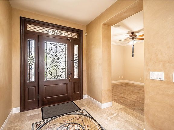 As you step through the grand double doors, your feet are greeted by beautiful travertine floors that lead directly into a great room with soaring high ceilings. An atrium boasting a tranquil pond creates a captivating focal point for residents and guests. The atrium's lush greenery and soothing waters provide a serene retreat right in your home.