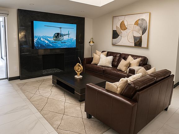This recently remodeled property boasts a modern chef's kitchen with high-end appliances, sleek white tile, and upscale furniture throughout.