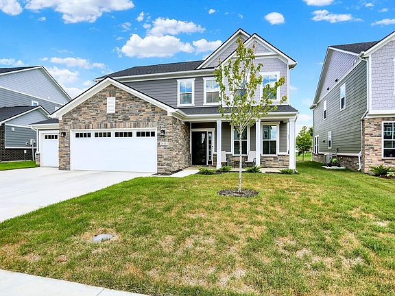 This stunning home offers 4 bedrooms, 3 baths, and a 3-car garage with extra storage space. The owner's suite features double walk-in closets, a fully tiled shower, and a dual-sink vanity. The spacious kitchen is a chef's dream with double ovens, a gas stovetop, microwave, and Culligan water softener with reverse osmosis system. Enjoy cozy evenings by the gas fireplace and outdoor living with covered front and back porches, a roll-down screen storm door, and a fenced backyard overlooking green space and a pond. Additional highlights include fresh updates making this home move-in ready. Conveniently located just minutes from Chatham Hills Golf Course and Grand Park. Seller is offering a $4,000 credit that can be used to lower interest rate, to put towards closing costs, or to make upgrades to the home! Schedule your private tour today!
