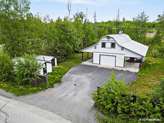 Set on a gated hilltop lot overlooking Big Lake, with dedicated lake access within walking distance! This large well crafted two story home features 3 bedrooms, 2.5 baths and TONS of storage for all your Alaskan toys! Highlights include two carports with overhead storage and two powered sheds, one with a wood stove for workshop space. This is the perfect place to embrace lake life all year round!