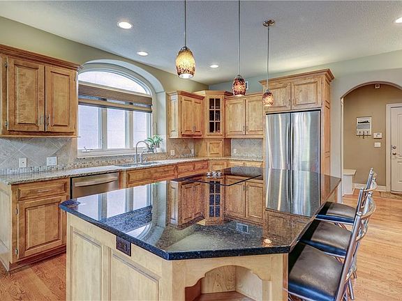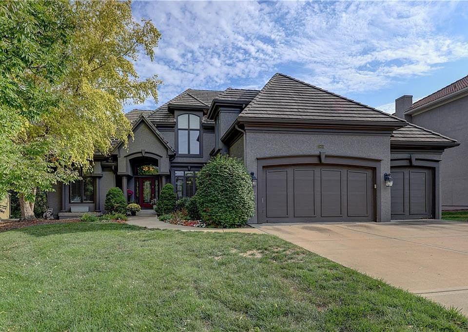 Price adjustment! Located on a wooded cul-de-sac lot, this home offers privacy, space and functionality. The main level primary suite has a see-through fireplace and large bathroom with Walkin closet. The main floor also includes a Livingroom with a wall of windows, dining room, hearth room, oversized bar in the kitchen. Secondary bedrooms are spacious, one oversized room would work well as an in-law suite. The finished lower level with a walk out has Floor to ceiling windows providing natural light. This space has a large entertainment area, game area, flex room/workout room, and a 5th bedroom. This home has two newer air conditioners/ 2023 Furnace/ Water Heater that is under warranty. Home has a low maintenance, tile roof. 3-car garage, ample storage, and a north-facing exterior. Back of home has south facing windows for a lot of natural light. Community amenities include a pool, walking trail, and upscale entrance monuments. Close to Shawnee Mission Park & the new Lenexa City Center. This won't last!