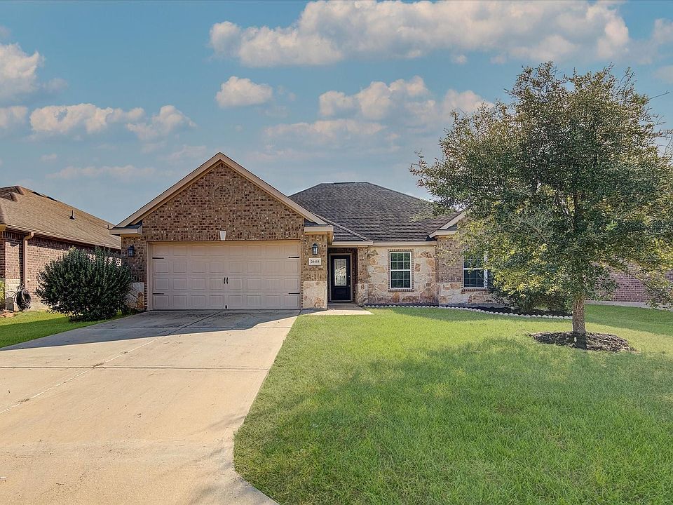 Beautiful 1-story home in Bauer Landing, Hockley TX, featuring 3 bedrooms, 2 bathrooms, and a 2-car garage. This open-concept floor plan offers a spacious kitchen, large dining room, and generous den with soaring ceilings and plenty of natural light. Enjoy easy maintenance with no carpet throughout. The covered patio overlooks a large backyard, perfect for entertaining or relaxing outdoors. Conveniently located near top-rated schools, shopping, dining, and major highways. A must-see home in Bauer Landing Hockley TX!