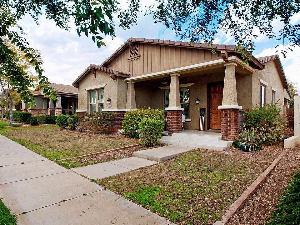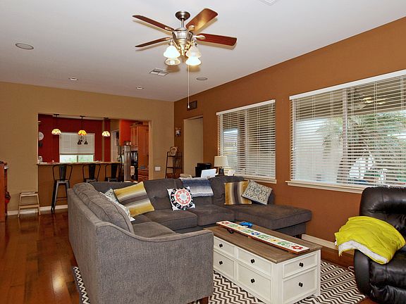 This Main Street District Verrado Single Story is on Woods Run Park. Offers a 3 Bedroom split floor plan, with hardwood floors, custom paint, plantation shutters, surround sound, upgraded kitchen, gas cook top, granite and more. You can relax on your front porch facing the park or retreat to the backyard with a covered patio, TV, built in grill area, fire pit, and spa. Verrado offers, tree lined streets, sidewalks, quality schools, shops, restaurants, golf, community pools, workout facility and... Verrado is a must see in the West Valley.