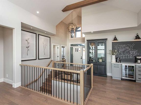 Wake up to picturesque views of Buffalo Lake, spend your afternoons relaxing on the beach or in the water, and unwind by the fire as the sun sets over the shoreline—this is lakeside living at its finest. Designed for those who crave connection, comfort, and a touch of luxury, this modern home blends effortless main-level living with exceptional indoor–outdoor spaces. Whether you’re raising a family that loves to play by the lake or desire a summer home, this property delivers in every way! Experience the beautiful community of Pelican View Estates. This tastefully designed and beautifully built Larkaun Home home is absolutely stunning! The main floor welcomes you with an open, airy layout that frames unforgettable views of Buffalo Lake. Soaring ceilings and ample windows that bring the outdoors in, gorgeous hardwood and tile flooring with a beautiful patio off the dining area. The chef-inspired Kitchen with quartz counters is built for entertaining, complete with a coffee/cooler bar and a walk-through pantry for easy organization. The Primary Suite is bright and welcoming with gorgeous views and access to the upper balcony, a spa-like Ensuite, large walk-in closet, and direct access to the Laundry Room—everything you need on one level. A main floor Den makes an ideal home office or quiet retreat. The bonus room upstairs is great for a recreation space and cozy movie nights. It sits above the oversized triple Garage that provides plenty of room for vehicles, lake gear, and storage. The walkout lower level is made for gathering—featuring an impressive wet bar, a sunroom that connects to the hot tub area, and three comfortable Bedrooms. Two share a Jack and Jill 5-piece Bath, while the third is next to a full Bath—perfect for hosting guests with privacy and comfort in mind. This level extends your living space, opening directly outside for patio and beach access. Outside, enjoy steps-to-the-water access, a firepit for evening campfires, and sweeping views that make this one of the most desirable spots on the lake. Whether it’s sunrise coffee on the balcony or sunset by the shore, this home captures the essence of modern lakeside living.