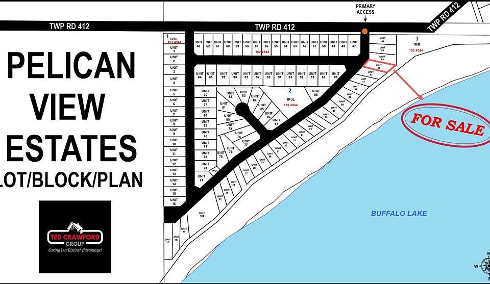 A magnificent lakefront property backing on to one of the best lakes in Alberta! A short drive from major cities and towns, 113 Lakeshore Drive is situated on 0.25 acres of land, a south facing lot with direct access to Buffalo Lake, communal dock systems with the convenience of purchasing your own boat slip and a real opportunity to build your home away from home. Being nestled in a provincial park, this is your chance to take advantage of everything nature has to offer including all of the water sports you could ever want: jet-skiing, pontoon boating, fishing boat, ice fishing – all year round activities! Neighboring lot 44 is also for sale and has the possibility of combining the two to make one massive lot. If that appeals to you, house plans can be available. Discover Alberta’s best kept secret at Pelican View Estates with fully serviced lots, paved access to your property and local schooling with recreation facilities. Your future is calling – don’t let this opportunity pass you by!