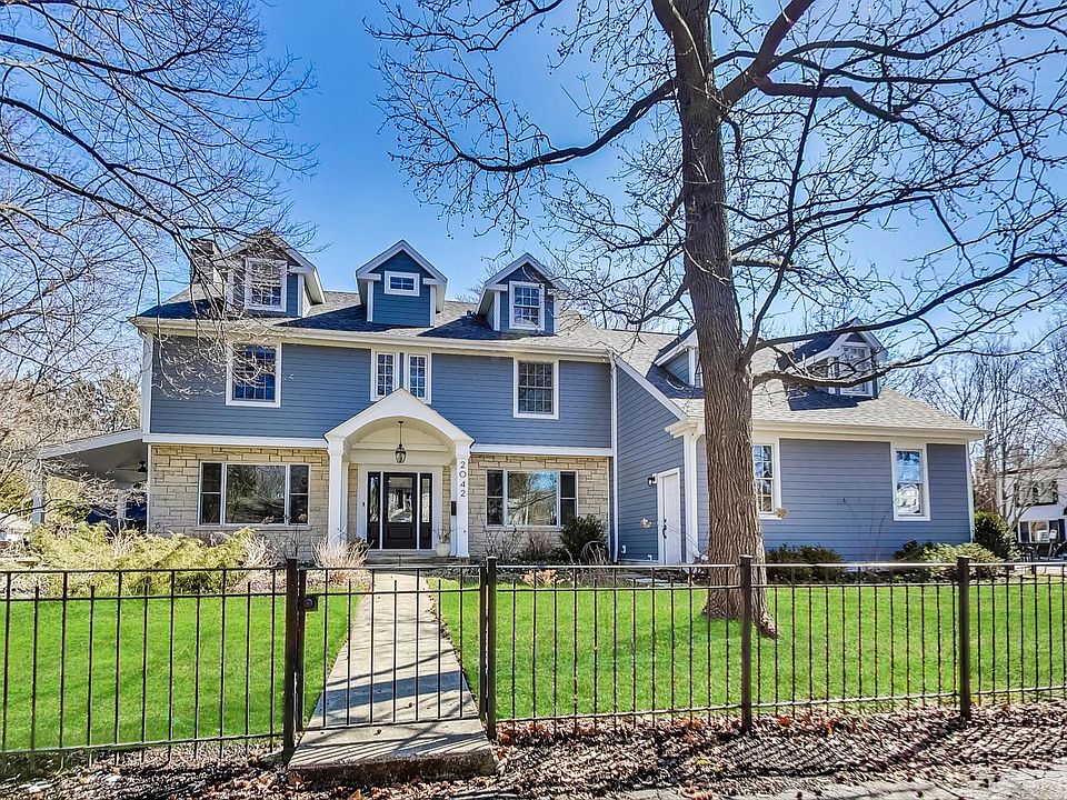 Six bedroom + office, Kenilworth Gardens Colonial on oversized lot with larger, private yard. Move in-ready and updated. Newer eat-in kitchen opens to a sunny family room with fireplace flanked by two sets of French doors. Newer hardwood floors throughout. Generously scaled formal rooms and great flow make this home perfect for entertaining. Large Primary suite with vaulted ceiling has updated bath, built-ins and closet space galore. Three additional bedrooms and hall bath complete the second floor. Two more bedrooms and bath on the third floor. Basement has large rec room, office and laundry. A lovely porch off the living room overlooks a lush, landscaped yard. Two-car attached garage. Completely fenced with electric gate.Ideally located just steps from Kenilworth Metra Station, Harper School and Thornwood Park. Ask Laura about long list of improvements in past FIVE years such as complete exterior renovation replacing all windows, doors, siding with new Hardie Board, rebuilt porch, New Hvac system: furnace, ac, water heater, new hardwood floors, just to name a few! Nothing to do but move in!