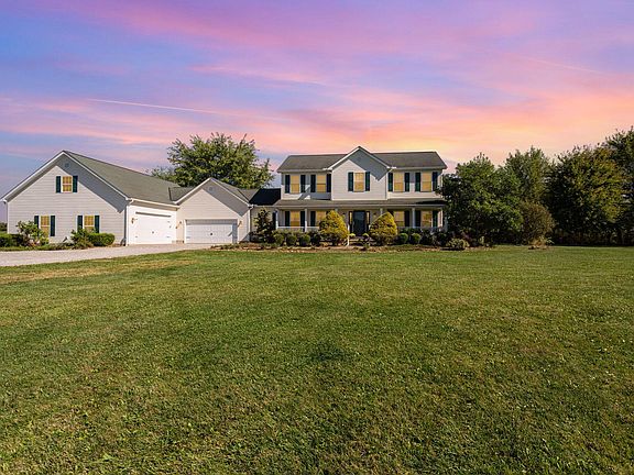 Two story w/3 Bdrms, 2 ½ baths, full Bsmt & 2 car attached garage sitting on 5 acres.