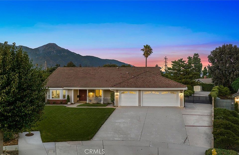 Welcome to 2042 Flower Court, a single-story sanctuary of luxury nestled within a tranquil cul-de-sac location in the heart of Upland, California. Encompassing a sprawling 29,163 square-foot lot, this property is a private oasis resembling a meticulously landscaped park, framed by breathtaking mountain views. Prepare to be enchanted by a home that has been reborn through flawless renovation, embracing sophistication and modern comfort in every detail. The interior is a masterpiece of design, with each of the 4 bedrooms and 2.5 bathrooms radiating elegance. Beauty unfolds in the formal living and dining rooms, providing an ideal backdrop for gatherings and cherished memories. Effortlessly entertain in the family room with the inviting ambiance of a warm fireplace. At the heart of it all is a breathtaking kitchen featuring a breakfast counter and charming breakfast nook - the perfect space for enjoyment and gathering of your family and friends. The family room and kitchen seamlessly blend in style and functionality in an open floor plan design. The indoor laundry room, equipped with a sink and cabinets, adds to the convenience factor and truly exemplifies the considerate design that forms the foundation of this home. Experience true opulence and the perfect balance of space and elegance as you enter a realm of tranquil luxury in the primary bedroom and en suite bathroom. Discover double sinks, a vanity area, a sumptuous soaking tub, and an inviting walk-in shower for ultimate relaxation. The pièce de résistance is the expansive custom walk-in closet, a haven for organization and the ultimate sanctuary for your wardrobe. Relish the tranquil surroundings and entertain your guests outdoors under the covered patio, or unwind and enjoy California's ideal weather day and night on the covered front porch. The front-facing three-car attached garage and gated RV parking offer plenty of space for your vehicles, storage, and recreational vehicles. Imagine housing your RV alongside a workshop and an additional dwelling unit (ADU), catering to your wanderlust and passions. Welcome to a realm where living is an art, and each facet of 2042 Flower Court resonates with your discerning taste.