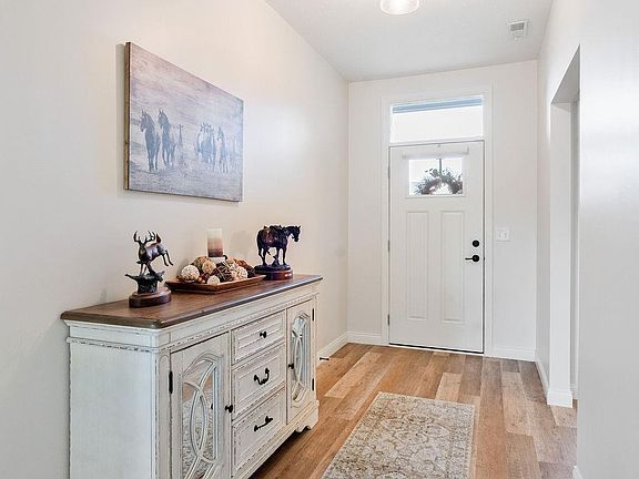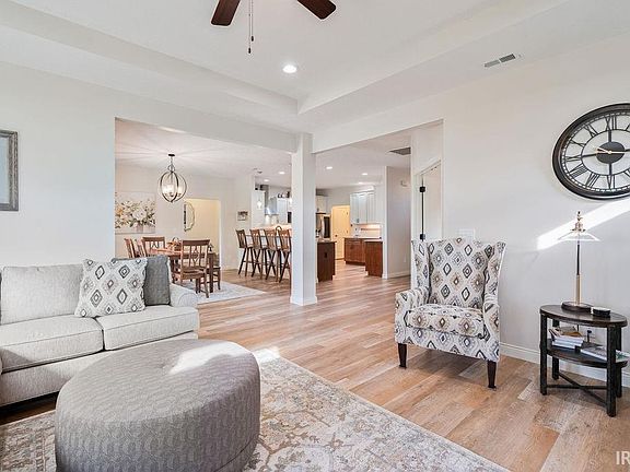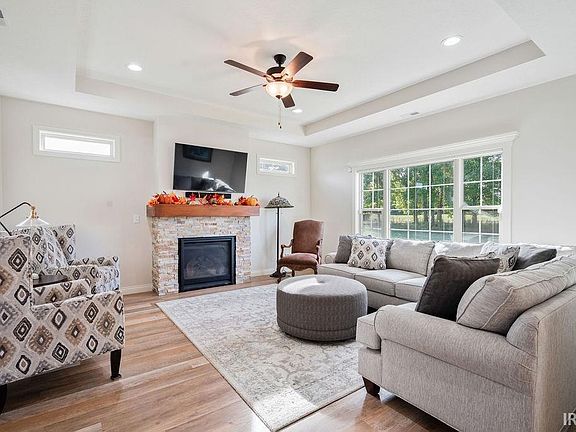 Nearly new Citation-built ranch home in desirable Autumn Woods subdivision with golf course view! Offering 2096 sq ft of living space, this 3 bedroom, 2 bath home is packed with upgrades. Foyer entry leads to an open concept great room with tray ceiling and gas fireplace. The kitchen is a chef's dream and is equipped with custom cabinetry, quartz countertops, tile backsplash, breakfast bar seating, and all stainless steel appliances-including a separate beverage refrigerator! A spacious dining area with a picture window overlooks the 6th hole of the Wildcat Golf Course. Primary suite features a tray ceiling, large walk-in closet, and spa-like ensuite bathroom with tile surround walk-in shower, soaking tub, dual sink vanity, and ceramic tile flooring. The split floor plan provides privacy with the 2 additional bedrooms and a stylish guest bath with its own walk-in tile surround shower on the opposite side of the home. Other interior features include an oversized laundry room with utility sink and custom blinds throughout. Enjoy outdoor living on the covered back patio with ceiling fan, surrounded by professional landscaping with custom concrete edging and a full yard irrigation system. A 2 car attached garage with bump out storage completes this beautiful home.