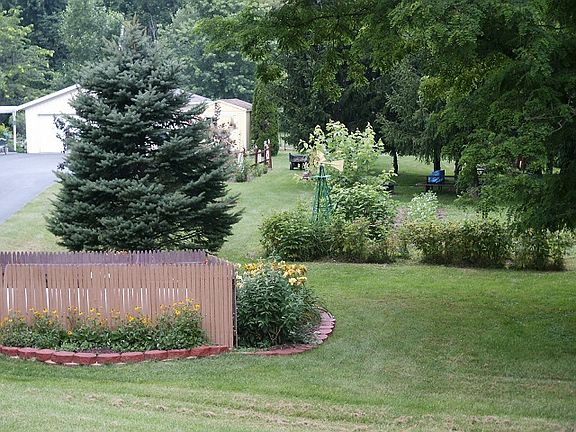 Paradise in the country! Wide doorways for easy of mobility, etc. Very well maintained and manicured gardens w/japanese maples, pear trees, fish pond with water lillies frogs and fish! Lots of room to grow and roam. (lawn ornaments are NOT part of the sale).