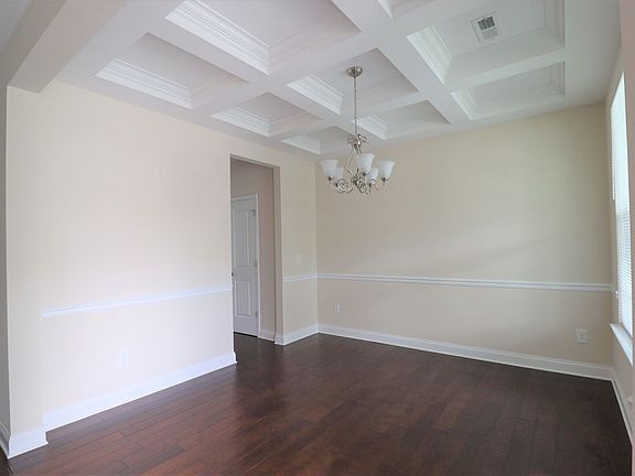 Formal dining: 11.4' x 11.1' w/coffered ceiling