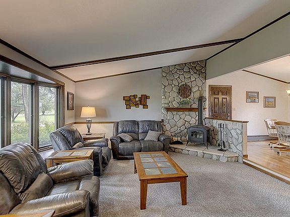 Pride of ownership shows in this 3 bd, 2 bath country home in Erin. Step into the sun filled living room with vaulted ceilings and cozy wood stove. Kitchen offers tons of cabinet and counter space, breakfast bar, island and dining area. Bedrooms all on main floor with updated bathrooms. Patio doors lead you to a delightful patio with beautiful landscaping. Enjoy entertaining or just relaxing in your 3 acre backyard that has views of Holy Hill! Summertime will be more fun with your private pool and deck. If you are looking for a place to store your cars/boats/toys there is a 24 x 28 detached extra garage. Lower level of home has a bar and workout area. Come view what this wonderful home as to offer!