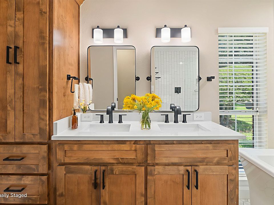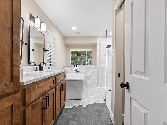 **Where Every Day Feels Like a Weekend Getaway**Step inside this move-in ready home, perfectly situated in a well-established neighborhood just 10 minutes from DFW Airport, Lake Lewisville, and Vista Ridge Mall. The crown jewel of the home is the fully renovated primary bathroom, featuring over $40,000 in upgrades, including custom cabinetry, a freestanding soaking tub, oversized frameless walk-in shower with designer tile, quartz countertops, modern light fixtures, upgraded water fixtures, and new mirrors—every detail thoughtfully designed to create a spa-like retreat. The home has been freshly painted throughout (2025), creating a bright and inviting atmosphere. You’ll love the luxury wood laminate flooring that flows seamlessly throughout. Major updates include a new roof (2025) and HVAC system (2019), offering long-term comfort and peace of mind. Step outside to your private backyard oasis, complete with a sparkling saltwater pool, ideal for relaxing. This home strikes the perfect balance of luxury, comfort, and everyday functionality—highlighted by a primary suite you’ll never want to leave!