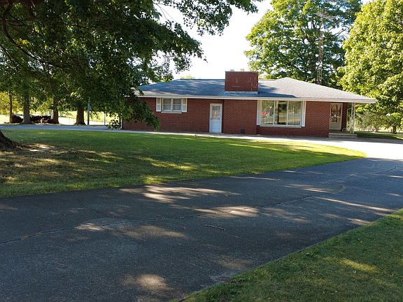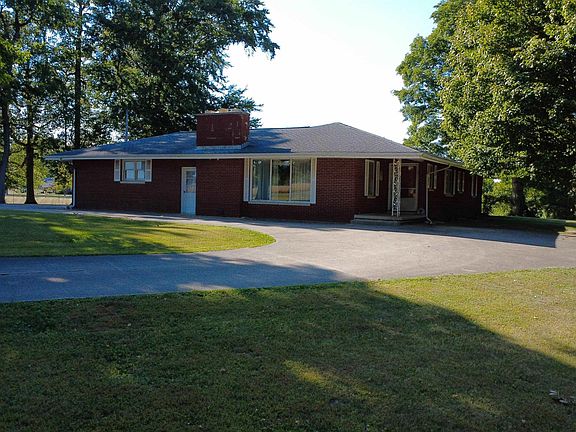 This Mid-Century brick beauty is ready to be restored to her former glory. Set on three shady acres, the home offers solid wood kitchen and bath cabinets, cedar-lined bedroom closets, and a stone fireplace in the living room. The main level includes an oversized attached two-car garage, a primary suite with full bath, plus a second full bath featuring dual sinks, a wraparound vanity, and walk-in shower. A custom spiral staircase and a rear staircase both lead to the lower level, which offers two spacious living areas, a second stone fireplace, a fourth bedroom, utility room with washer/dryer hookup, and a half bath. Though the basement needs attention, it has the potential to once again be the heart of the home. Estate sale—sold As-Is.