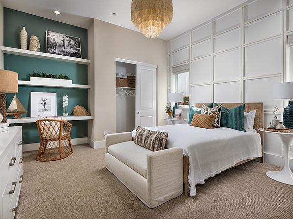 Deluxe styling. The Vito's welcoming covered entry reveals the soaring two-story foyer, spacious great room, two-story casual dining area, and desirable luxury outdoor living space beyond. The well-designed gourmet kitchen is equipped with a large center island with breakfast bar, plenty of counter and cabinet space, and ample walk-in pantry. The impressive primary bedroom suite features a palatial walk-in closet and deluxe primary bath with dual vanities, large soaking tub, luxe shower with seat, and private water closet. Central to a generous loft, secondary bedrooms feature sizable closets, two with private bath, one with shared hall bath. Additional highlights include a desirable first floor bedroom with closet and private bath, sizable office, convenient powder room and drop zone, centrally located laundry, and additional storage.