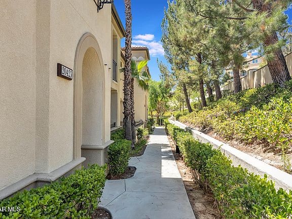 Great New Price! Beautiful townhome in Great Location! This gated property is located in the exclusive Aldea community of Porter Ranch, featuring many modern amenities and 'nextdoor' to shops and restaurants. Wood like flooring, stainless steel appliances, and decorator finishes throughout. Large granite breakfast bar in kitchen that opens to spacious family room with dramatic windows and patio for plenty of natural light. Great floorplan allowing for entertaining area, as well as ample privacy. Tandem two car garage, and indoor laundry room (washer and dryer included). Beautiful community pool, guard gated. Welcome Home to Aldea!
