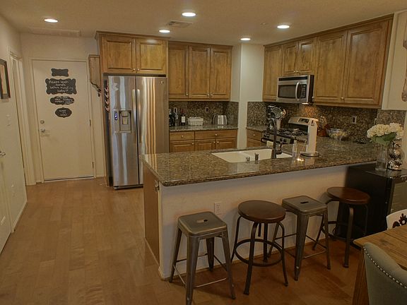 Luxurious two level Porter Ranch townhome in desirable private, guard gated Las Brisas at Aldea. Amenities of this must see home built in 2009, include a designer-selected entry door, 2 bedrooms, 2.5 baths, two car direct access garage, private porch with gate, beautiful hardwood floors throughout the first level, the spacious family room features a stylish ceiling fan, Milgard windows, and plantation shutters. Dining room with chandelier, gourmet kitchen with granite countertops with full backsplash, stainless steel G.E. ?Energy Star? appliances, including dishwasher, range/oven, microwave, & trash compactor. The second level features, a side by side washer & dryer, office nook, a large master bedroom with another stylish ceiling fan, sumptuous private bath, dual sinks with granite countertops, & large walk in dual mirrored closet. The second bedroom is also good sized with a large closet, and full bath. Convenient to the San Fernando Valley's major freeway system, featuring a wide range of recreation facilities, as well as its own Town Center, including Porter Valley Country Club, YMCA, CSUN, and the new Porter Ranch Community School K-8.Brokered And Advertised By: ZipRealty Listing Agent: Ben Samimi