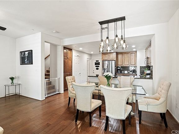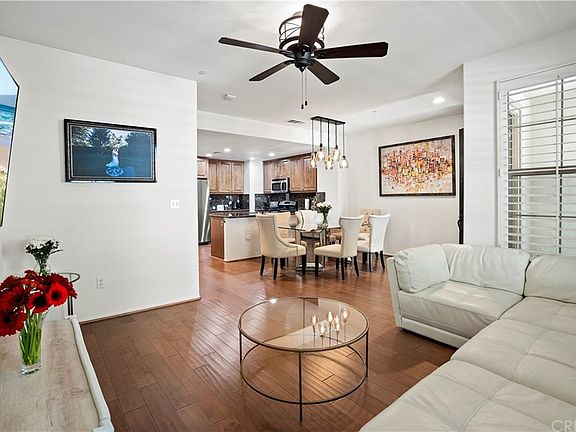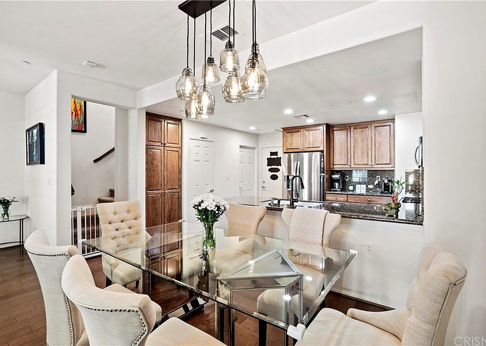 Luxurious two level townhome in desirable private, guard gated Aldea at Porter Ranch. Amenities of this must see home built in 2009, include a designer-selected entry door, 2 bedrooms, 2.5 baths, two car direct access garage with overhead garage storage racks, private porch with gate, beautiful hardwood floors throughout the first level, the spacious family room features a stylish ceiling fan, Milgard windows, and plantation shutters. Dining room with beautiful chandelier, gourmet kitchen with granite countertops and full backsplash, stainless steel G.E. Energy Star appliances, including dishwasher, range/oven, microwave, & trash compactor. The second level features, a side by side washer & dryer, office nook, a large master bedroom with another stylish ceiling fan, sumptuous private bath, dual sinks with granite countertops, & large walk in dual mirrored closets. The second bedroom is also good sized with a large closet, and full bath. The community includes pool & spa, separate shaded children's wading pool, outdoor kitchen w/2 gas BBQ grills, seating area w/2 TV's & ceiling fans, fireplace, & children's playground! Conveniently located to the premier entertainment destination of Porter Ranch, The Vineyard's, & the Porter Ranch Community School K-8
