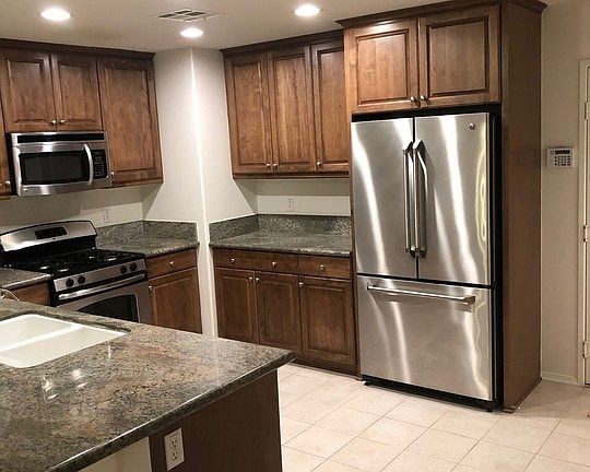 MUST SEE! This is a 3 Beds + 2 Baths beautiful home in a private gated community. This home offers a spacious living room and an open kitchen. The kitchen has stainless steel appliances, gorgeous wood cabinets, and granite counter tops. There are recessed lighting throughout and plantation shutters. The home has an upstairs balcony in the master suite bedroom and also a patio in the front. Two car attached parking garage, and a resort style pool, playground, and BBQ area. This location in Porter Ranch sits in a prime area with new shopping center coming in soon. Sorry no pets will be allowed.